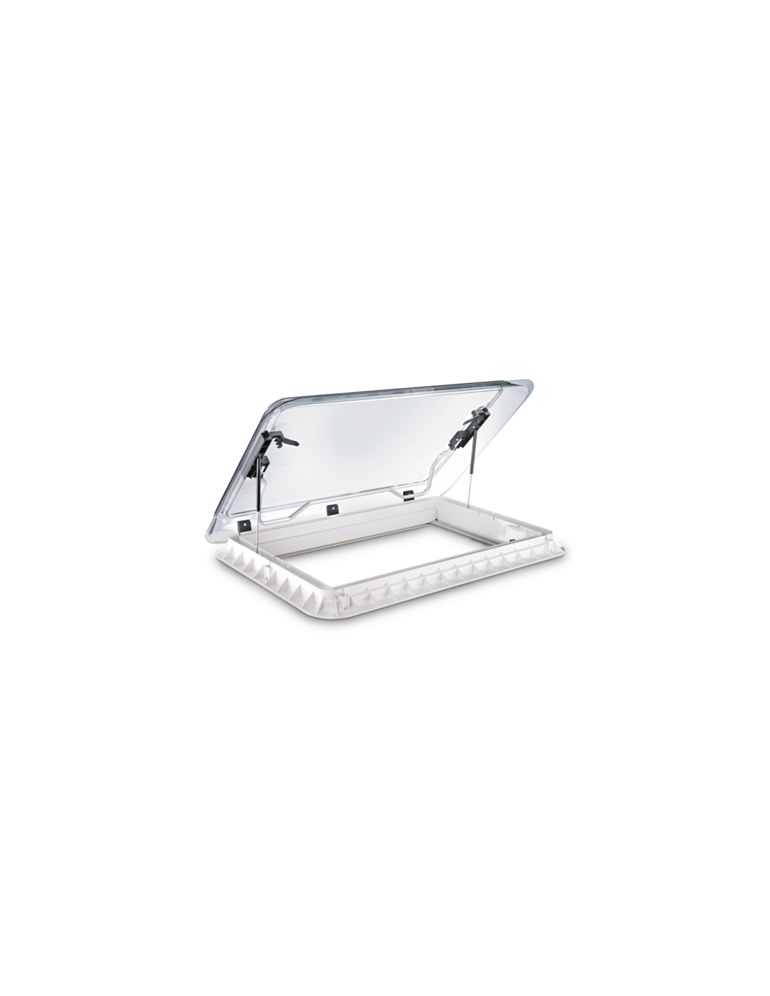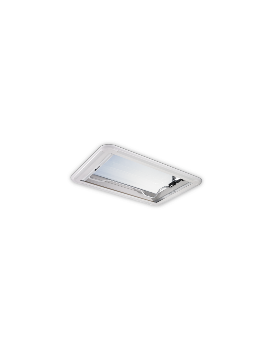 Claraboya abatible de gran tamaño (790x1080mm) con mosquitera y oscurecedor independientes. Aporta aire fresco, luz natural y confort en caravanas y campers.